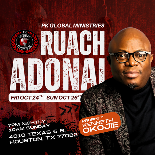 Ruach Adonai is a prophetic encounter focused on the breath of God reviving every dry place. Come expectant for deep worship, fresh wind, and powerful revelation as Prophet Kenneth Okojie leads this transformative weekend.